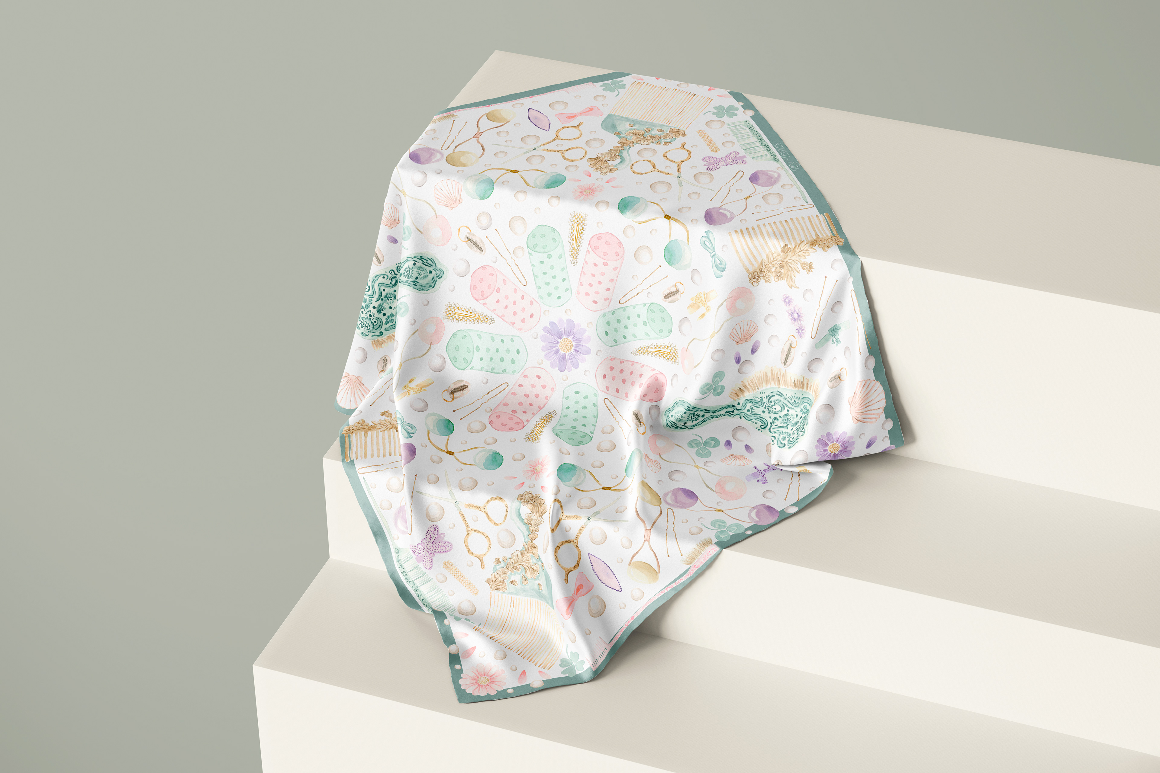 Hand painted illustrations for silk scarves.