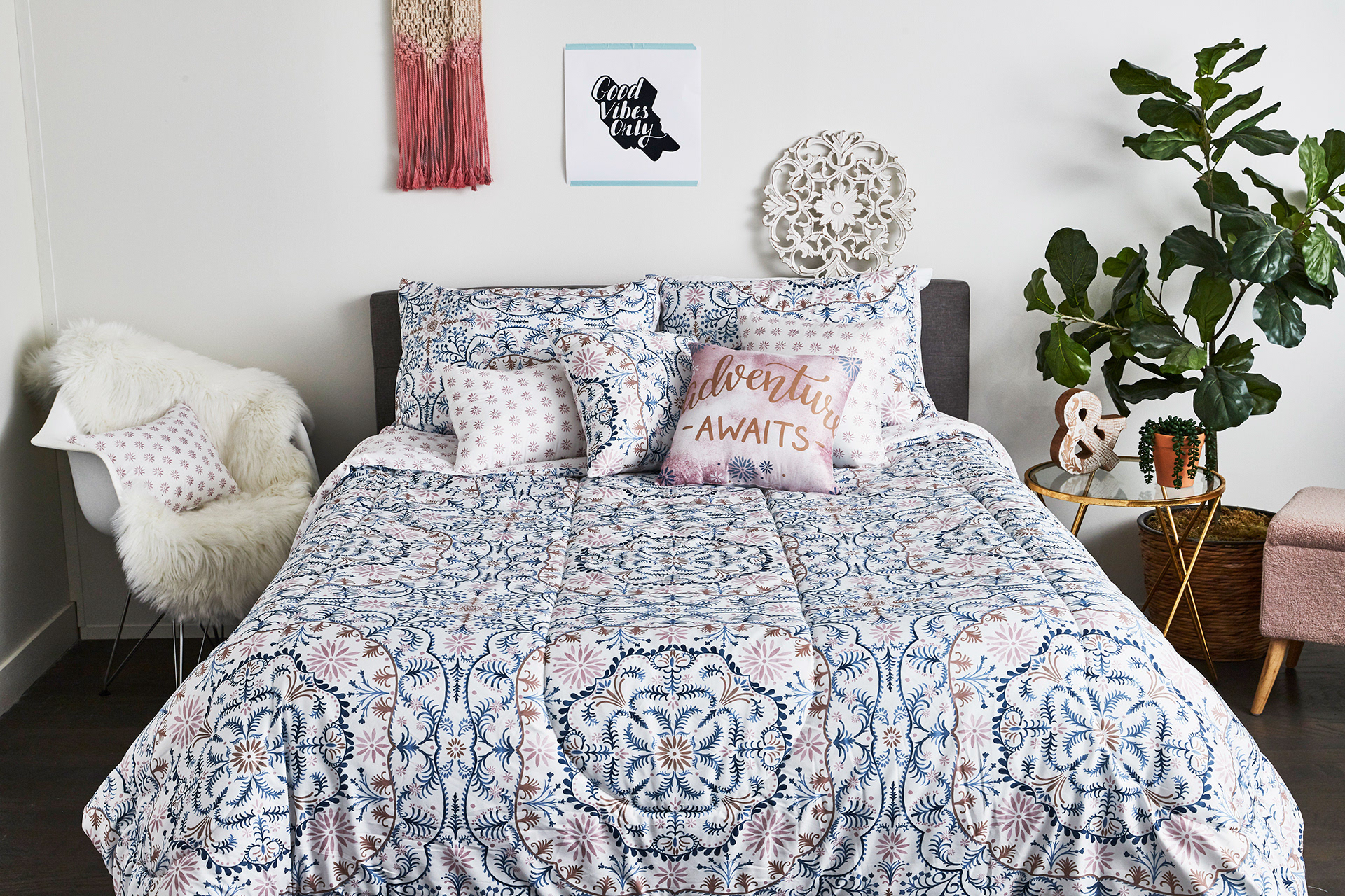 Lifestyle shots of a few of my home product designs. Including a combination of tabletop and bedding. Design work includes specification, graphic design, and surface treatment.